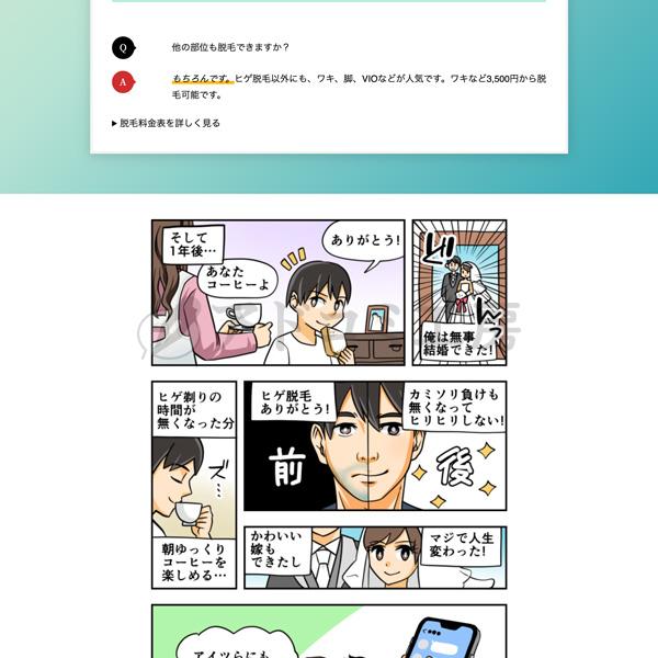 今回ご依頼いただいたのは、脱毛サービスの広告漫画LP。